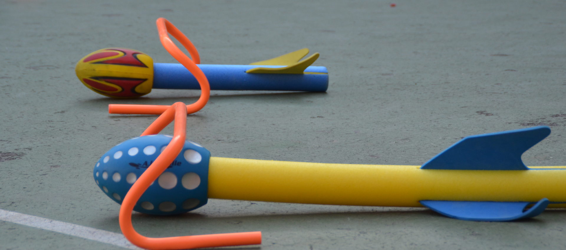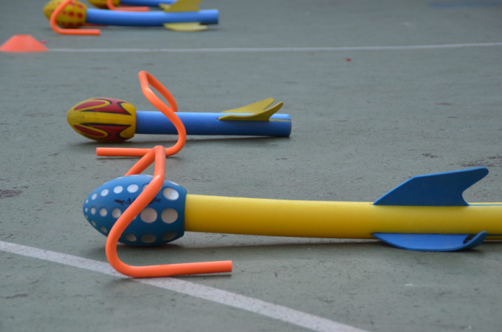 Όλος ο εξοπλισμός μας (ακόντια, σφαίρες κτλ) είναι ειδικά μελετημένος για παιδιά, κατασκευασμένος με υλικά που δεν επιτρέπουν τραυματισμούς και είναι εύκολος στη χρήση του από μαθητές μικρών ηλικιών.